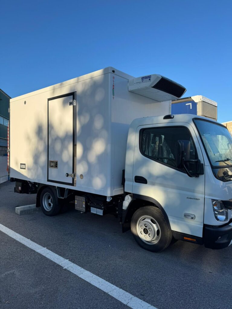 La caja frigorífica, adaptada a las dimensiones del chasis Fuso, incorpora puerta lateral independiente y diversos accesorios que la convierten en una solución perfecta para el transporte de mercancía a temperatura controlada.