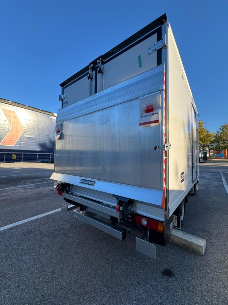 En cuanto a la plataforma elevadora, se ha instalado un modelo Dhollandia de 1.000 kg, equipado con plato de aluminio, ideal para operaciones de carga y descarga frecuentes.