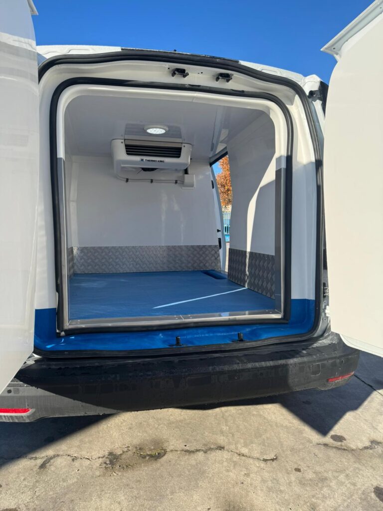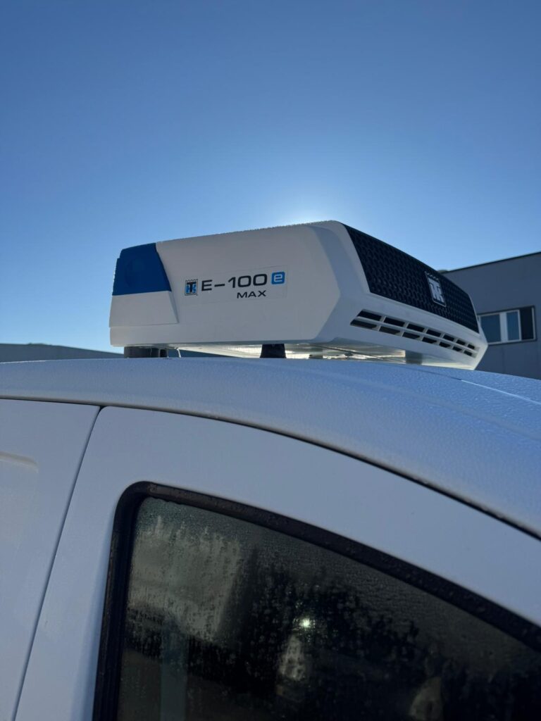 Tras haber transformado el vehículo con un isotermo reforzado, hemos optado por la instalación de un equipo de frío marca Thermo King, modelo E-100 MAX 10 capaz de llegar a temperaturas negativas. Este modelo de equipo de frío, pertenece a la nueva Serie E de Thermo King, que es el principal estándar para la refrigeración totalmente eléctrica en vehículos comerciales ligeros.