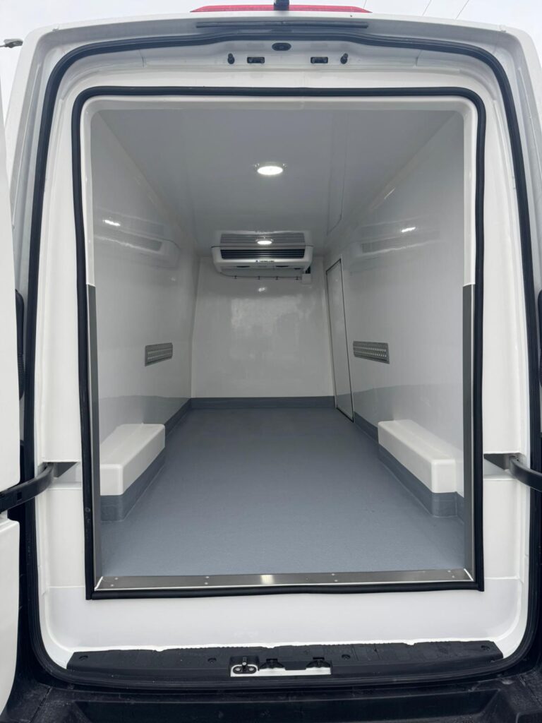 La base de este proyecto ha sido una furgoneta MAN, que ha sido transformada mediante la instalación de un isotermo reforzado con paneles de alta densidad, diseñado para garantizar la máxima eficiencia térmica en el transporte de productos congelados.