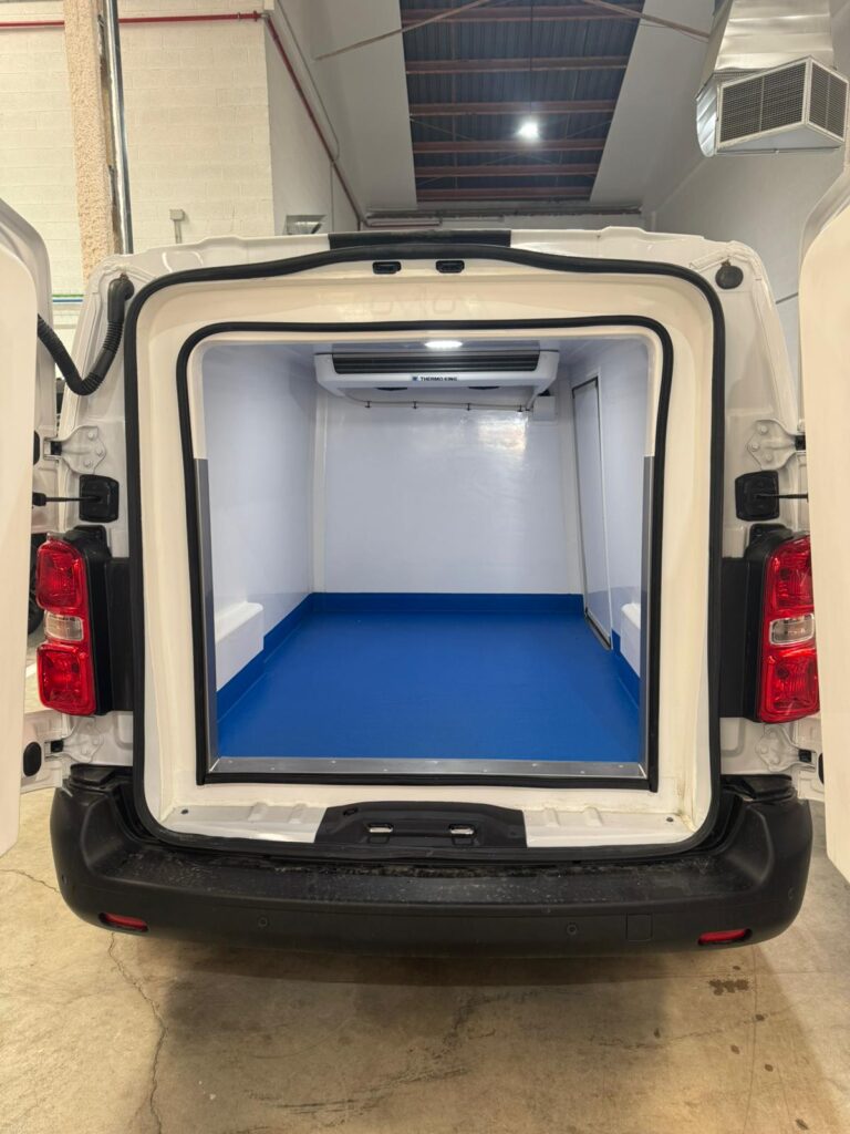 Esta preparación convierte la furgoneta en una solución ideal para empresas que necesitan garantizar la cadena de frío en productos congelados, como alimentación, repostería o distribución especializada.